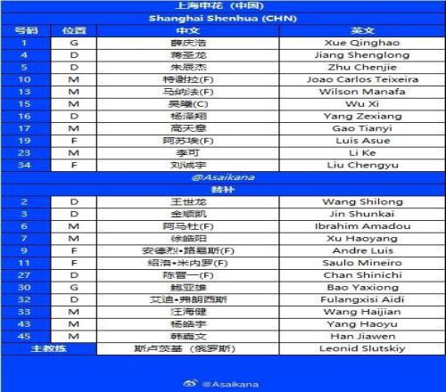 北京时间10月22日20:15,亚冠精英联赛阶段第3轮,上海申花主场迎战首尔,赛前双方公布了本场比赛的首发阵容: